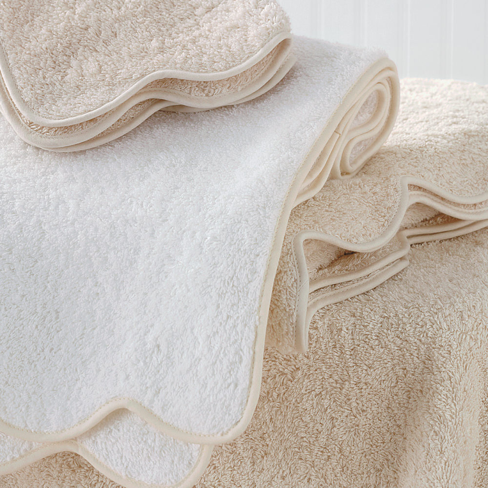 Eqyptian cotton terry with piping, 625 gm. Stocked in White terry with white piping. Custom orders for other terry colors and piping colors available. Shown here as White Terry with White Piping. Made in the USA of fabric from Portugal.
