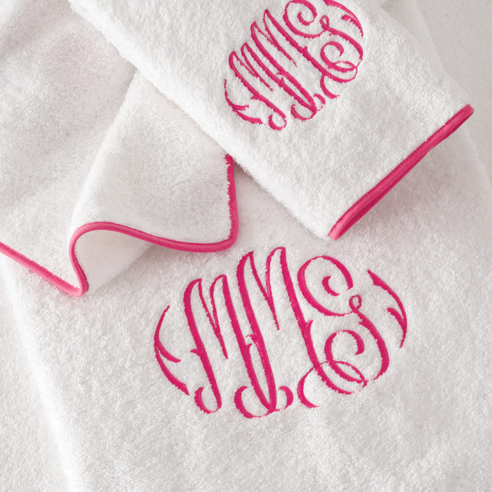Long staple cotton terry with piping. 100% cotton, 625 gram. Custom color combinations are available with upcharge using ivory, pearl, pool, sand, smoke gray or white terry
