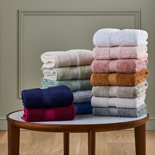 Class and elegant, these terry towels are made of Egyptian cotton and blended with modal, a natural beech wood fiber.  83% Cotton 17% Modal,  This fabrication makes for a softer, more absorbent and luxurious towel.  Each piece is generously oversized and finished with a beautiful woven dobby.
