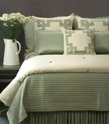 The channel quilted silk coverlet offers an alternative to the traditional diamond quilted pattern. 1″ channel quilting runs horizontally on the coverlets. (King – 112 x 98, Queen 96 x 98).