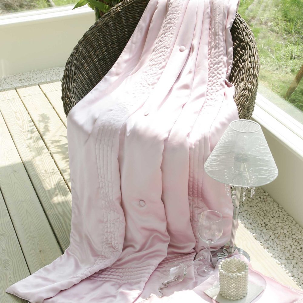 Kumi Kookoon’s silk-filled throw is covered in the softest charmeuse silk and filled with exquisite hand-stretched silk filling. Its generous size makes it perfect for use in any room, and its airy feel lends a gentle, elegant drape. Classic (Gold image) – The delicate five-row border stitching and six-button design adds a neutral and subtle style to this luxurious throw. Dream Collection(Raindrop Image) -This is a stunning blend of form and function. This silk-filled throw features subtle design detail like band perimeter stitching, center box-stitching, buttons, and silk ties.