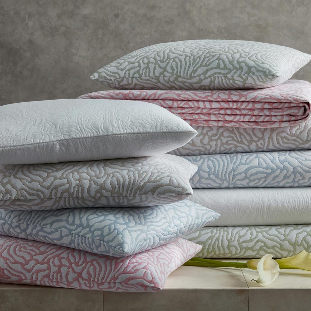 An organic Schumacher print is the inspiration behind our unique Cora coverlet and shams. Woven in Italy with a soft, lightweight drape, Cora is offered in three two-tone styles that bring out a bolder animal pattern, or in White, emphasizing its topographic appearance.