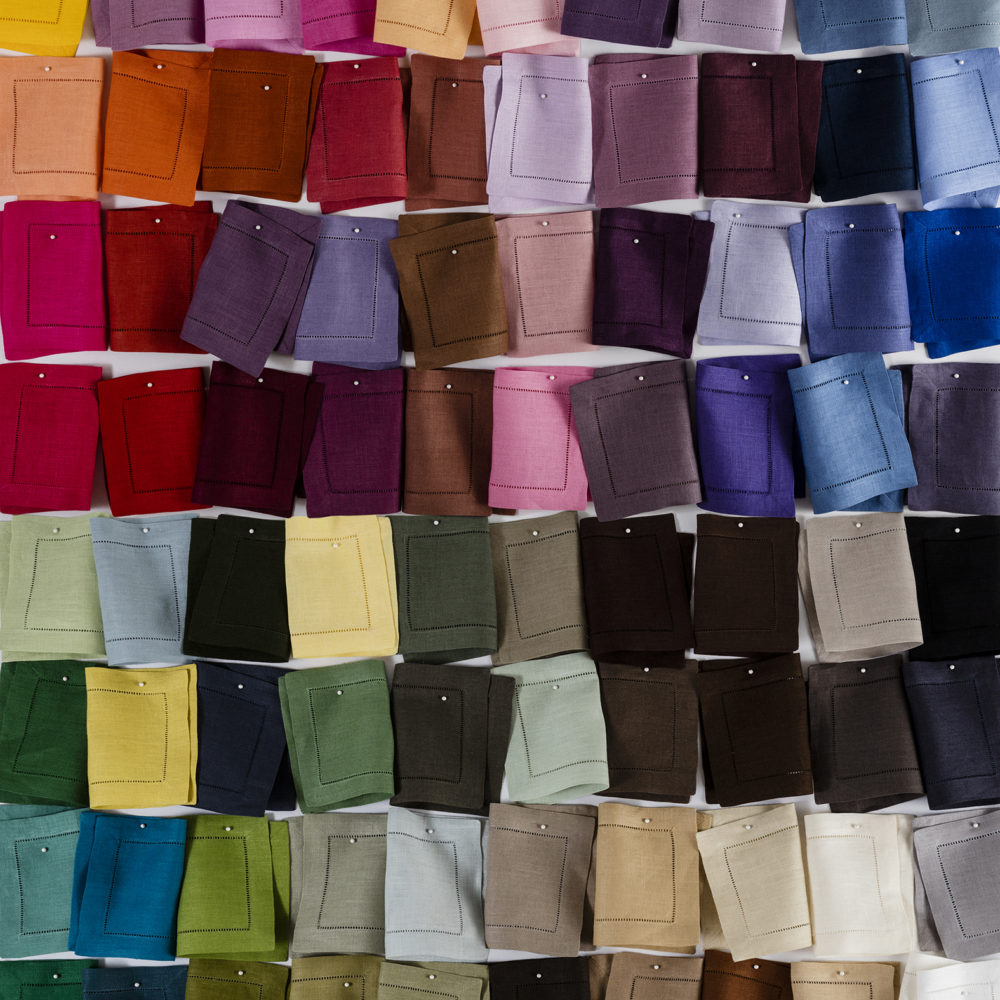 Available in Cocktail Napkins, Dinner Napkins, Runners, Tablecloths and Placemats. Fabric: 100% Linen woven in Europe. Placemats, Dinner and Cocktail Napkins available in 101 colors. Tablecloths and Runners stocked in select colors and available in all colors as a custom order. Select Colors noted below.