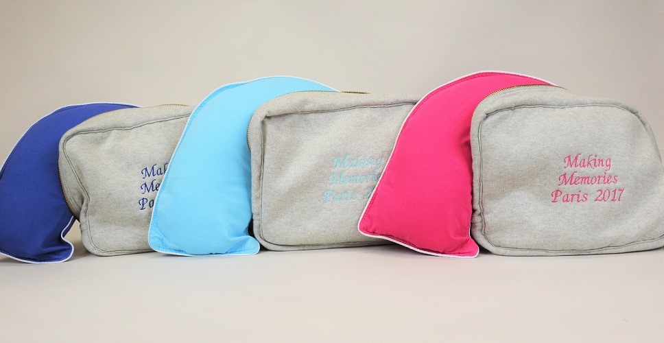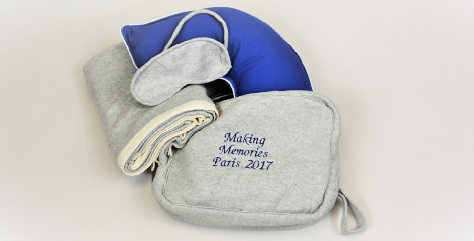 – Jetsetter MINI down alternative travel pillow (choose from 4 colors) with embroidery and washable zippered protector