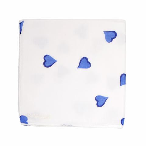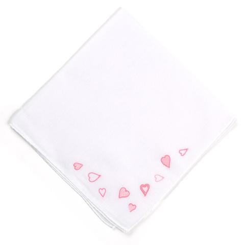 Printed cotton voile handkerchiefs with hand-rolled hems and embroidered D. Porthault signature.